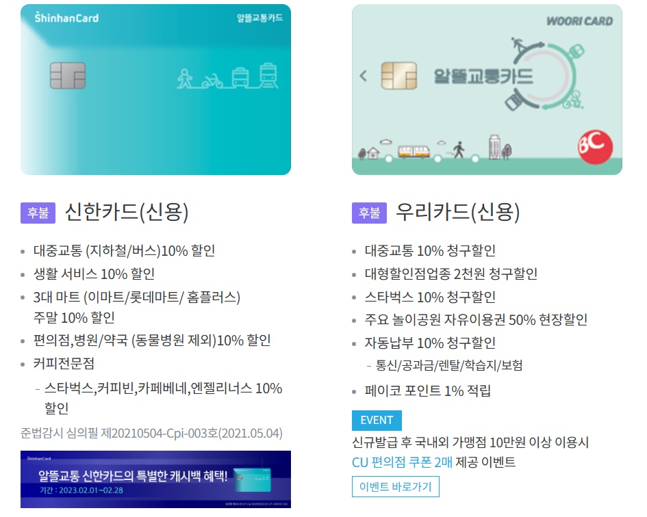 그래도 다른 카드들로 충분히 알뜰교통카드의 혜택을 받을 수 있습니다.